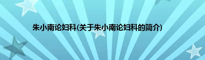 朱小南论妇科(关于朱小南论妇科的简介)