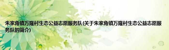 本文关于朱家角镇万隆村生态公益志愿服务队的简介就讲解完毕,希望对大家有所帮助。