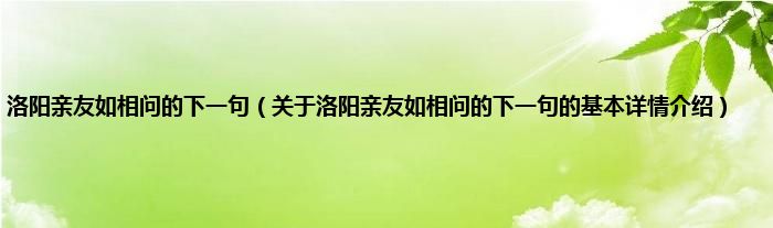 本文关于洛阳亲友如相问的下一句的基本详情介绍就讲解完毕,希望对大家有所帮助。