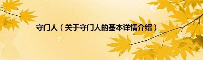 本文关于守门人的基本详情介绍就讲解完毕,希望对大家有所帮助。