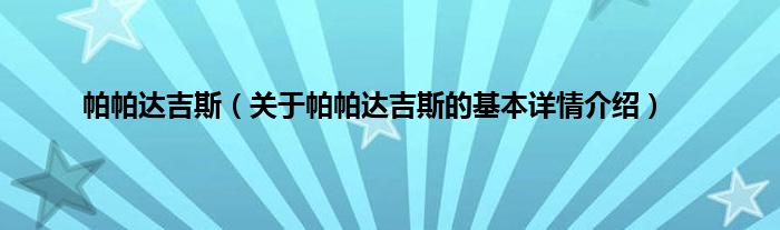 大家好我是小蝌蚪,帕帕达吉斯,关于帕帕达吉斯的基本详情介绍很多人还不知道,那么现在让我们一起来看看吧!