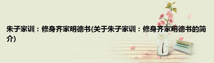 本文关于朱子家训:修身齐家明德书的简介就讲解完毕,希望对大家有所帮助。