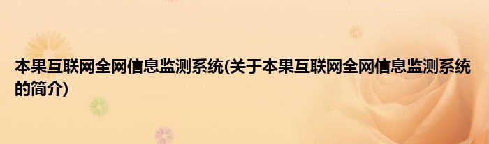 本文关于本果互联网全网信息监测系统的简介就讲解完毕,希望对大家有所帮助。