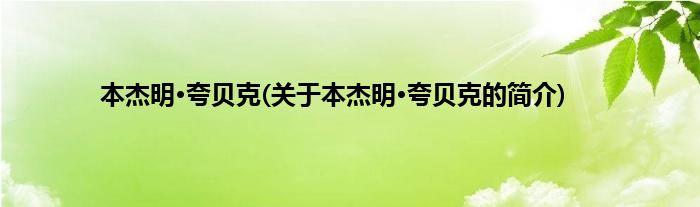 大家好,本杰明·夸贝克,关于本杰明·夸贝克的简介很多人还不知道,现在让我们一起来看看吧!