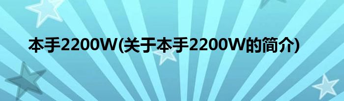 大家好,本手2200W,关于本手2200W的简介很多人还不知道,现在让我们一起来看看吧!