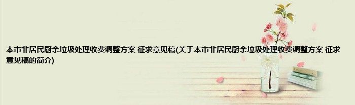 大家好,本市非居民厨余垃圾处理收费调整方案 征求意见稿,关于本市非居民厨余垃圾处理收费调整方案 征求意见稿的简介很多人还不知道,现在让我们一起来看看吧!