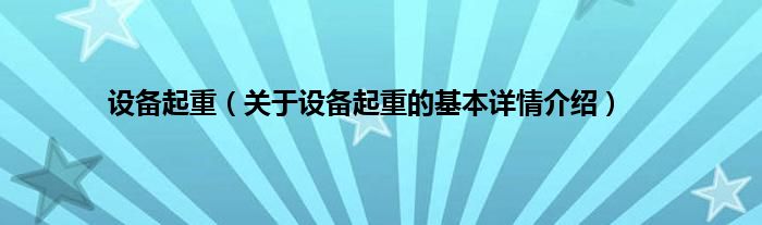 设备起重(关于设备起重的基本详情介绍)