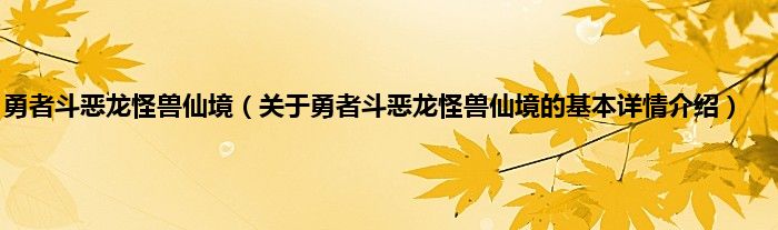 本文关于勇者斗恶龙怪兽仙境的基本详情介绍就讲解完毕,希望对大家有所帮助。