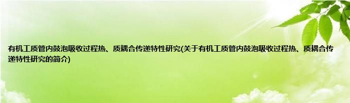 有机工质管内鼓泡吸收过程热、质耦合传递特性研究(关于有机工质管内鼓泡吸收过程热、质耦合传递特性研究的简介)