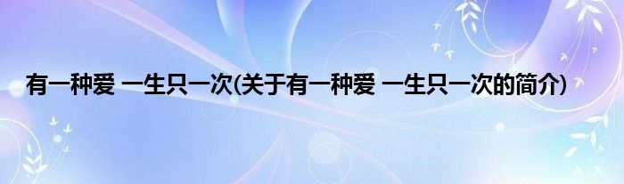 本文关于有一种爱,一生只一次的简介就讲解完毕,希望对大家有所帮助。