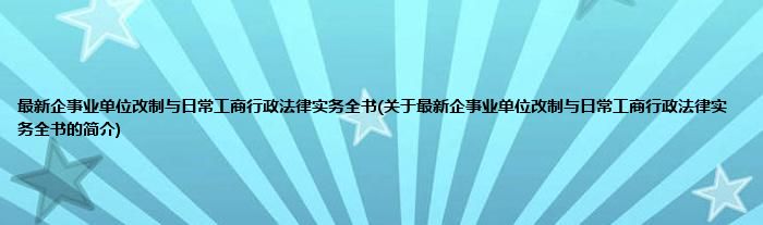 本文关于最新企事业单位改制与日常工商行政法律实务全书的简介就讲解完毕,希望对大家有所帮助。