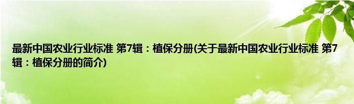 本文关于最新中国农业行业标准 第7辑:植保分册的简介就讲解完毕,希望对大家有所帮助。