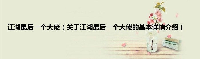 江湖最后一个大佬(关于江湖最后一个大佬的基本详情介绍)