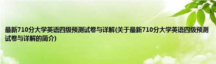 最新710分大学英语四级预测试卷与详解(关于最新710分大学英语四级预测试卷与详解的简介)