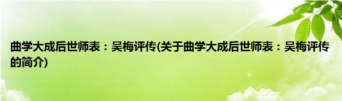 本文关于曲学大成后世师表:吴梅评传的简介就讲解完毕,希望对大家有所帮助。