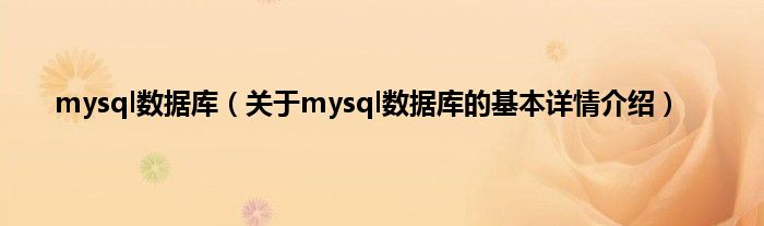本文关于mysql数据库的基本详情介绍就讲解完毕,希望对大家有所帮助。