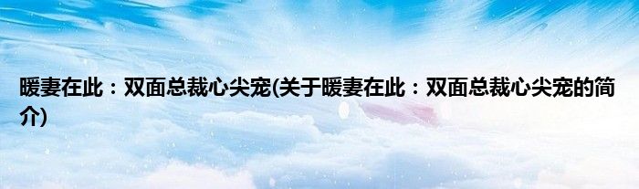 大家好,暖妻在此:双面总裁心尖宠,关于暖妻在此:双面总裁心尖宠的简介很多人还不知道,现在让我们一起来看看吧!