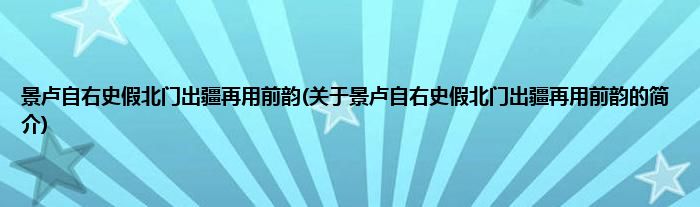 景卢自右史假北门出疆再用前韵(关于景卢自右史假北门出疆再用前韵的简介)