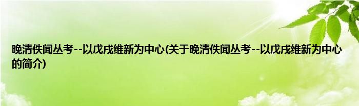 本文关于晚清佚闻丛考--以戊戌维新为中心的简介就讲解完毕,希望对大家有所帮助。