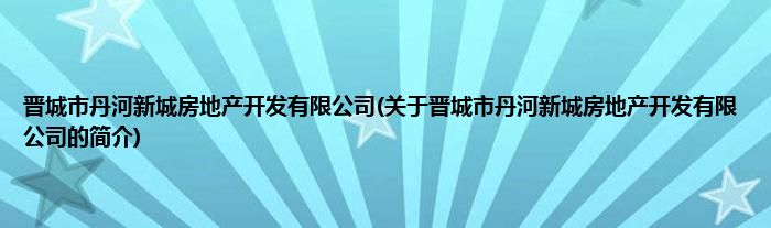 本文关于晋城市丹河新城房地产开发有限公司的简介就讲解完毕,希望对大家有所帮助。