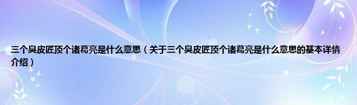 本文关于三个臭皮匠顶个诸葛亮是什么意思的基本详情介绍就讲解完毕,希望对大家有所帮助。