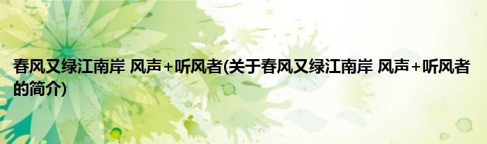 本文关于春风又绿江南岸 风声+听风者的简介就讲解完毕,希望对大家有所帮助。