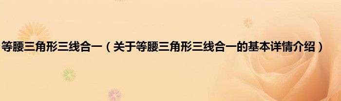 本文关于等腰三角形三线合一的基本详情介绍就讲解完毕,希望对大家有所帮助。