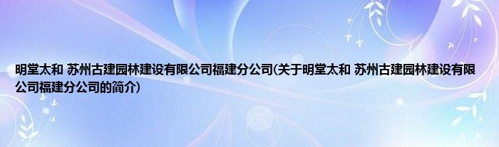 本文关于明堂太和 苏州古建园林建设有限公司福建分公司的简介就讲解完毕,希望对大家有所帮助。