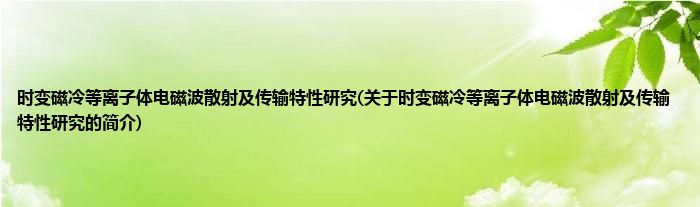 时变磁冷等离子体电磁波散射及传输特性研究(关于时变磁冷等离子体电磁波散射及传输特性研究的简介)