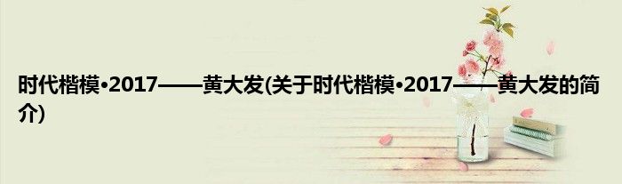 本文关于时代楷模·2017——黄大发的简介就讲解完毕,希望对大家有所帮助。