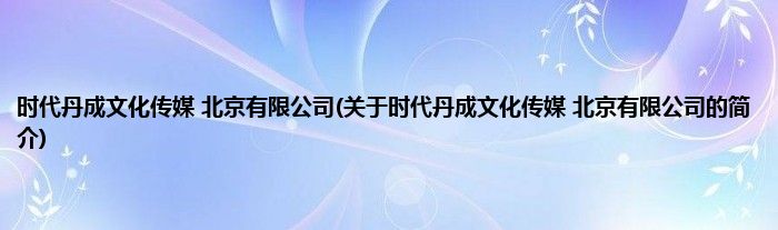 本文关于时代丹成文化传媒 北京有限公司的简介就讲解完毕,希望对大家有所帮助。
