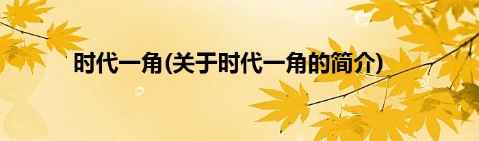 本文关于时代一角的简介就讲解完毕,希望对大家有所帮助。
