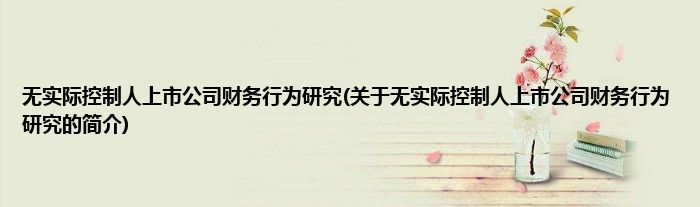 本文关于无实际控制人上市公司财务行为研究的简介就讲解完毕,希望对大家有所帮助。