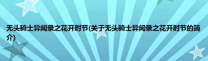 本文关于无头骑士异闻录之花开时节的简介就讲解完毕,希望对大家有所帮助。