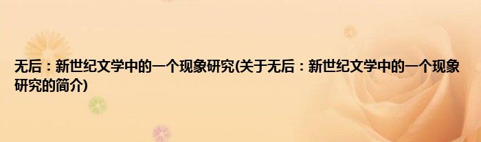 无后:新世纪文学中的一个现象研究(关于无后:新世纪文学中的一个现象研究的简介)