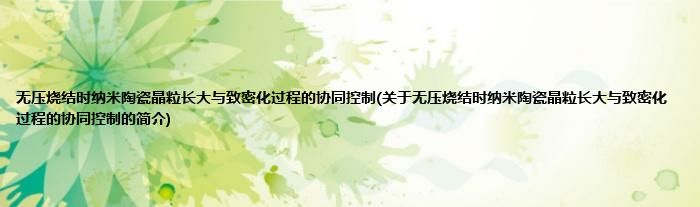 本文关于无压烧结时纳米陶瓷晶粒长大与致密化过程的协同控制的简介就讲解完毕,希望对大家有所帮助。