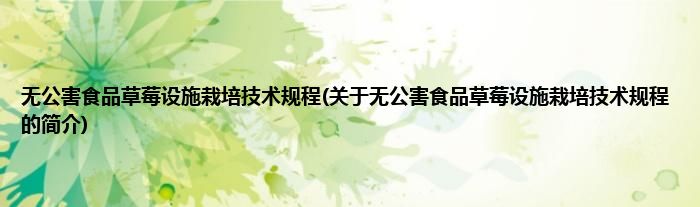 本文关于无公害食品草莓设施栽培技术规程的简介就讲解完毕,希望对大家有所帮助。