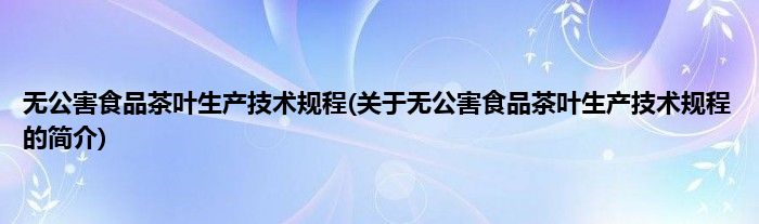 本文关于无公害食品茶叶生产技术规程的简介就讲解完毕,希望对大家有所帮助。