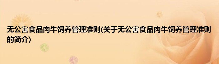 本文关于无公害食品肉牛饲养管理准则的简介就讲解完毕,希望对大家有所帮助。