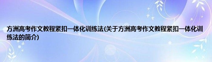 本文关于方洲高考作文教程紧扣一体化训练法的简介就讲解完毕,希望对大家有所帮助。
