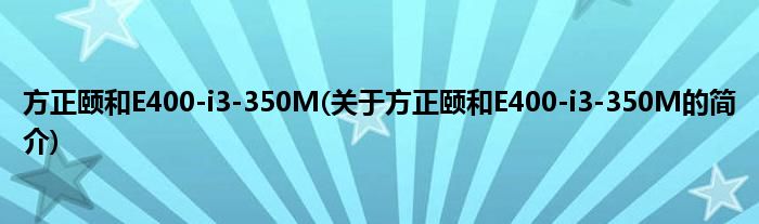 本文关于方正颐和E400-i3-350M的简介就讲解完毕,希望对大家有所帮助。