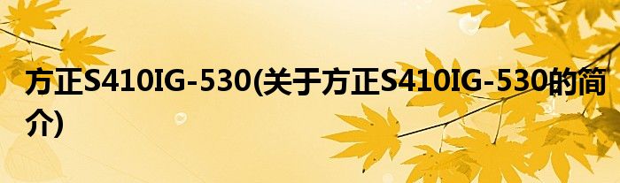 本文关于方正S410IG-530的简介就讲解完毕,希望对大家有所帮助。