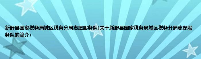 本文关于新野县国家税务局城区税务分局志愿服务队的简介就讲解完毕,希望对大家有所帮助。