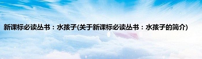 本文关于新课标必读丛书:水孩子的简介就讲解完毕,希望对大家有所帮助。