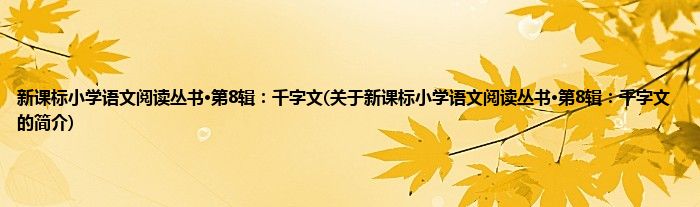 本文关于新课标小学语文阅读丛书·第8辑:千字文的简介就讲解完毕,希望对大家有所帮助。