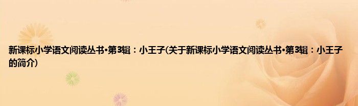 本文关于新课标小学语文阅读丛书·第3辑:小王子的简介就讲解完毕,希望对大家有所帮助。