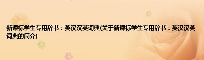 1、 《新课标学生专用辞书:英汉-汉英词典》是一部内容丰富的英汉汉英双向词典,适合中学及程度相当的读者学习和使用。