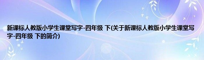 新课标人教版小学生课堂写字-四年级 下(关于新课标人教版小学生课堂写字-四年级 下的简介)