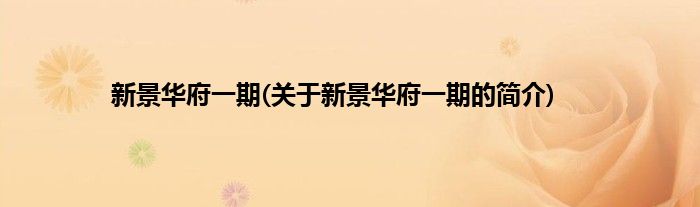 大家好,新景华府一期,关于新景华府一期的简介很多人还不知道,现在让我们一起来看看吧!