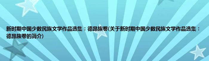 本文关于新时期中国少数民族文学作品选集:德昂族卷的简介就讲解完毕,希望对大家有所帮助。